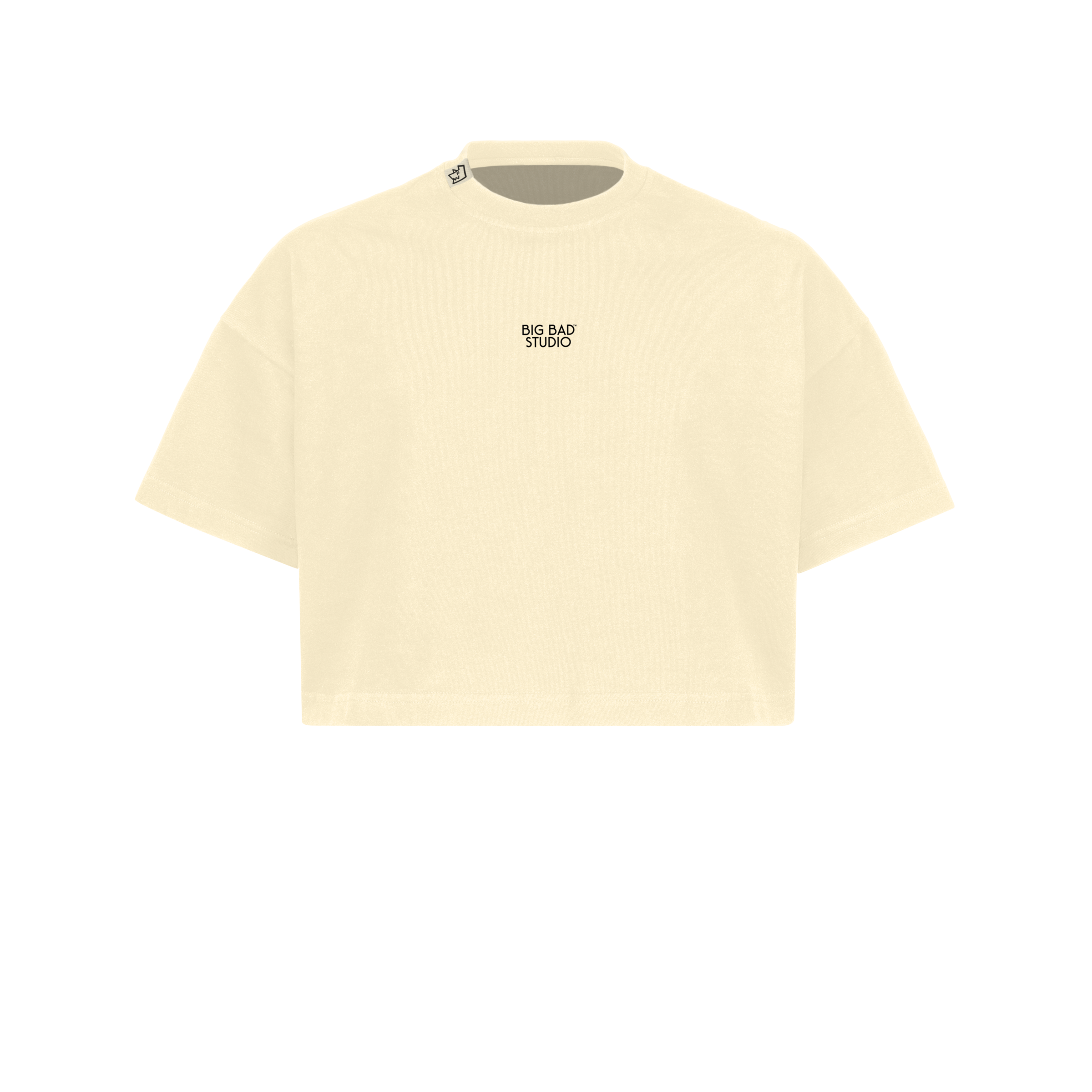 This relaxed, organic cotton tee is a wardrobe staple. Its oversized fit and dropped shoulders create an effortlessly cool vibe. The cropped length adds a modern touch, making it perfect for pairing with jeans or slacks.